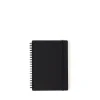 A notebook made with high quality recycled paper that does not bleed through easily, and a sturdy paperboard cover. The notebook has horizontal lines and vertical dots providing versatility for both note-taking and bullet-journaling. The notebook lies flat for ease-of-use.