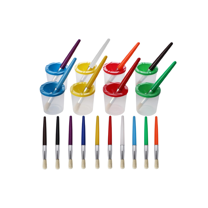 - 10 brushes and 8 spill proof paint cups